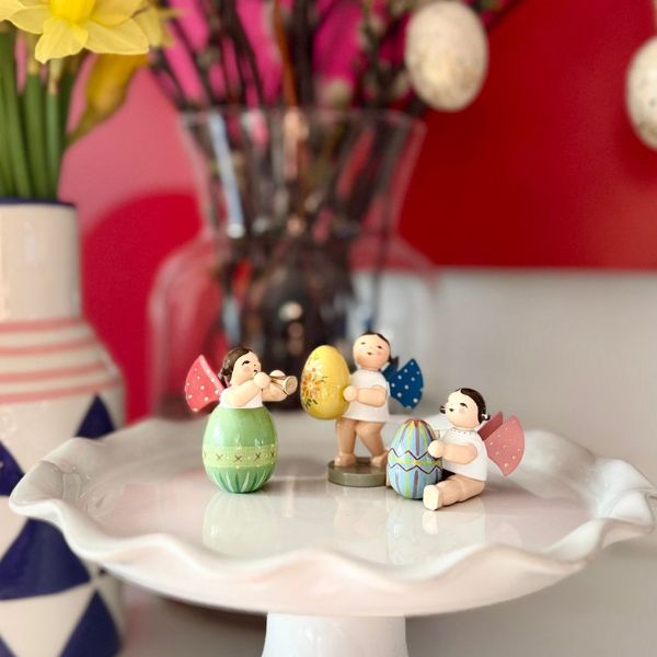 3er Set Grünhainichener Engel mit Ei von Wendt & Kühn